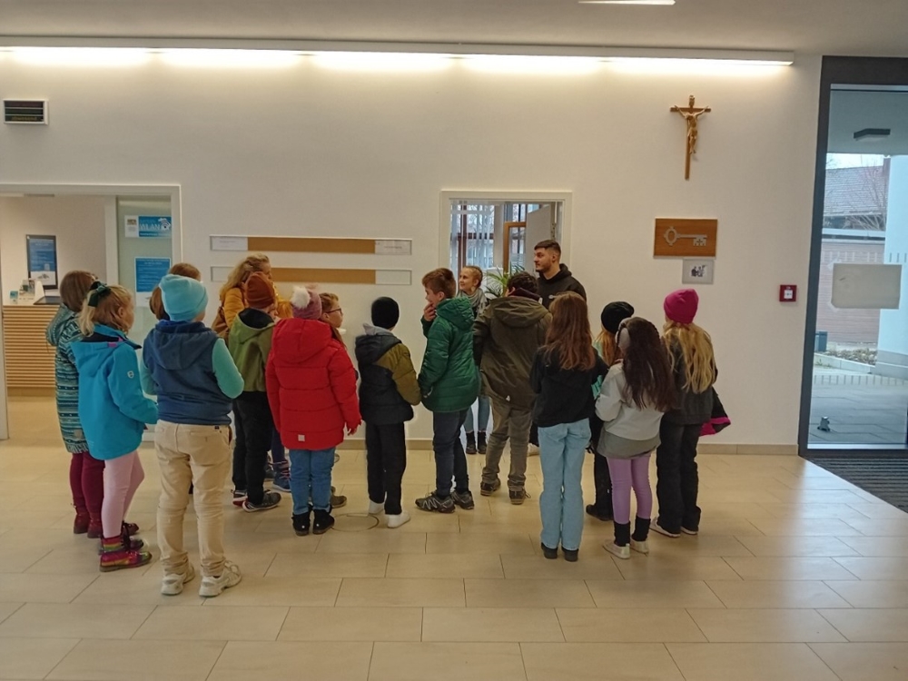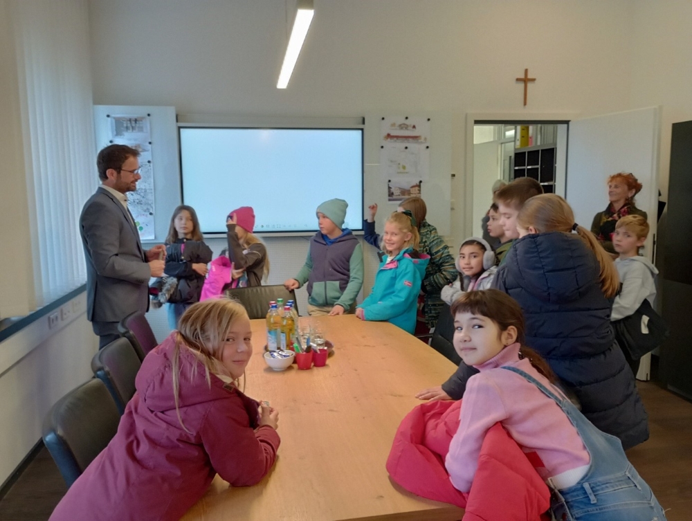 Wie jedes Jahr im Rahmen des HSU-Themas „Unsere Gemeinde“ besuchten auch die jetzigen Viertklässler am 12.11. 24 den Bürgermeister im Rathaus.
