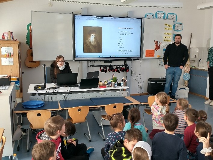 Zu Beginn erzählte uns eine Mitarbeiterin vom Merlin Verlag etwas über Leonardo Da Vinci. Dass er der Maler der berühmten „Mona Lisa“ war, war den meisten bekannt. Was viele nicht wussten: Da Vinci war auch ein Erfinder, der seine Ideen mit Hilfe intensiver Beobachtung von Naturphänomen verwirklichte.