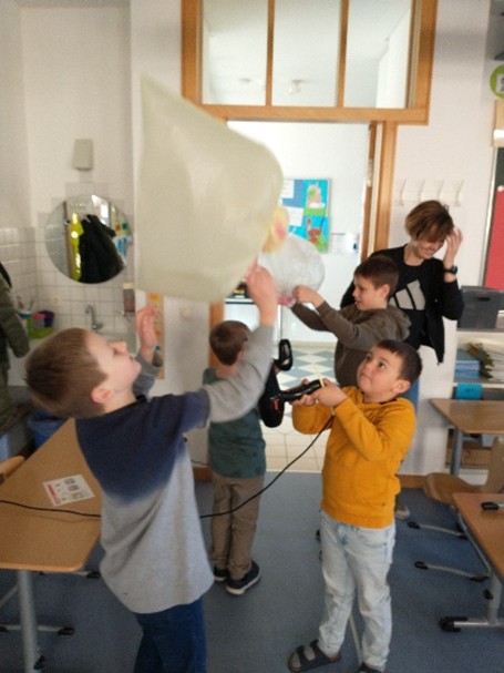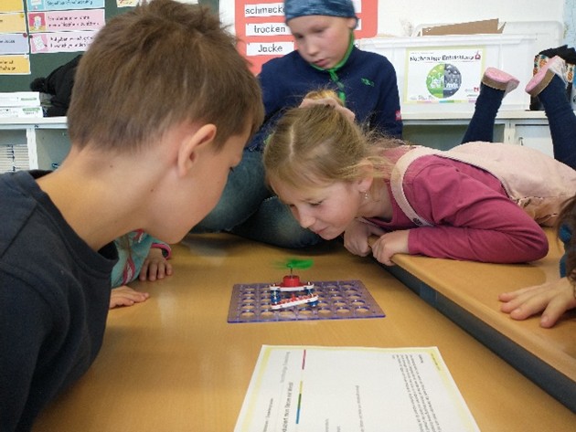 Die Devise lautete: Lies genau, vermute zuerst, experimentiere dann und erkläre deine Beobachtungen. Unterstützung bekamen die Kinder u.a. von Eltern, die bereits am Vortag beim Aufbau der Stationen geholfen und sich so in die verschiedenen Themen eingearbeitet hatten.