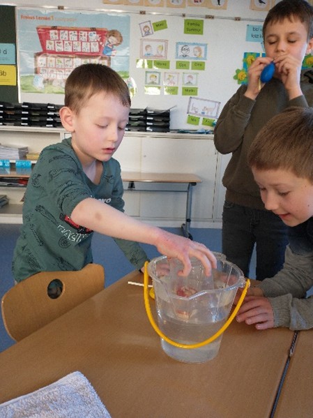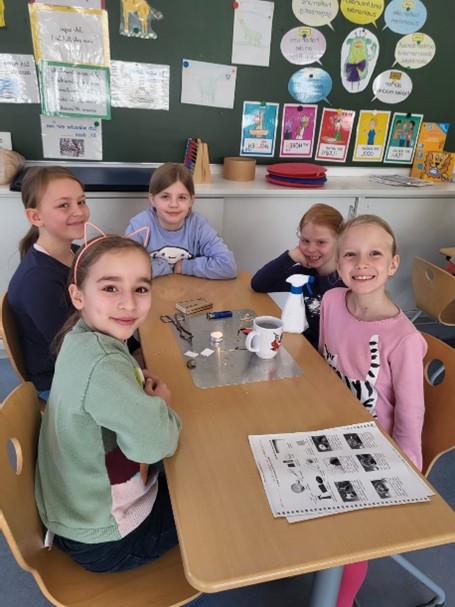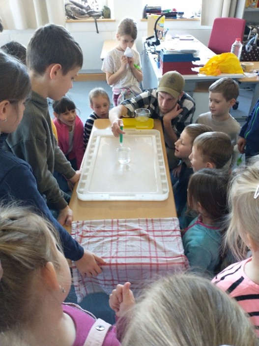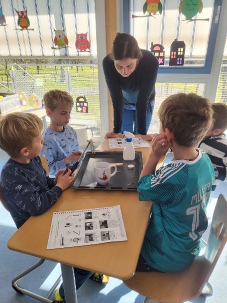 Völlig faszinierend fanden unsere Schüler beim Thema Wasser, dass dieses eine Oberflächenspannung hat. Vielen Dank an Herrn Doehn (Schülervater), der dieses Phänomen sehr eindrucksvoll und kindgerecht erklärte und demonstrierte.