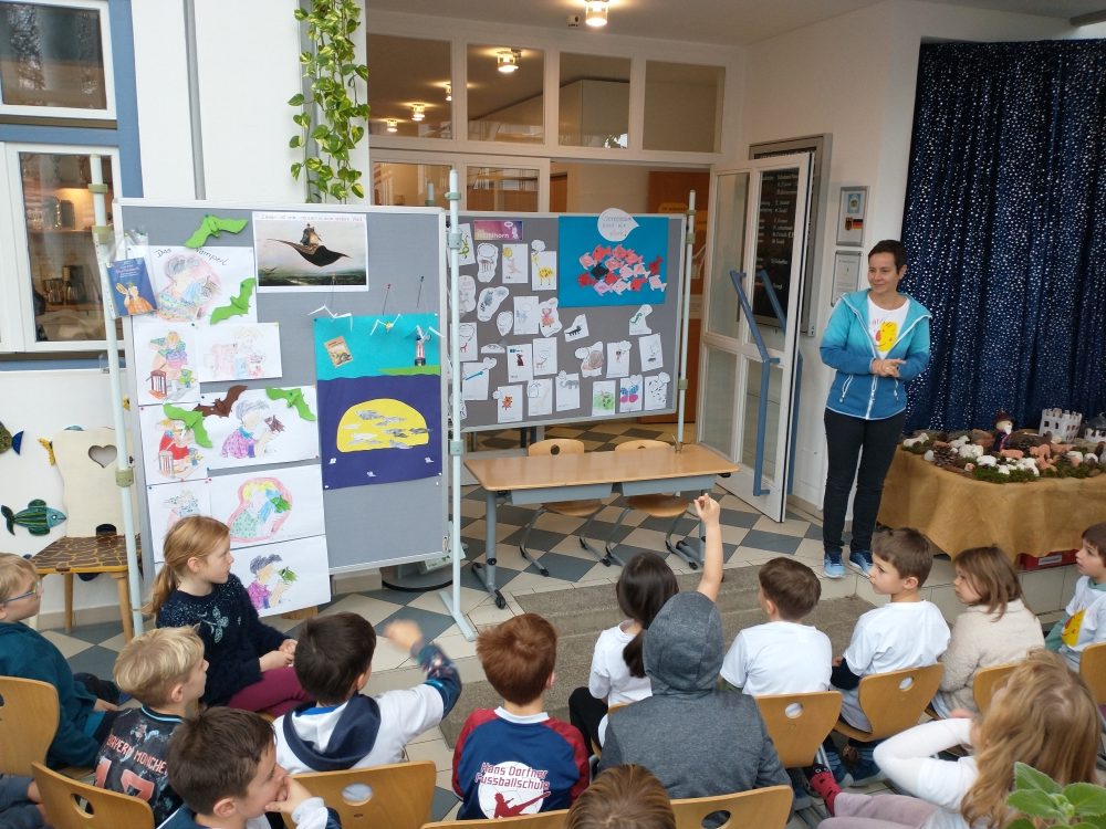 Der zweite Montag war unser Vorlesetag. Aus einem abwechslungsreichen Angebot durfte sich jeder Schüler und jede Schülerin klassenübergreifend für ein Buch entscheiden, aus dem ihm bzw. ihr von den Lehrkräften nicht nur vorgelesen, sondern zu dem im Anschluss gebastelt, gemalt oder gesungen wurde.