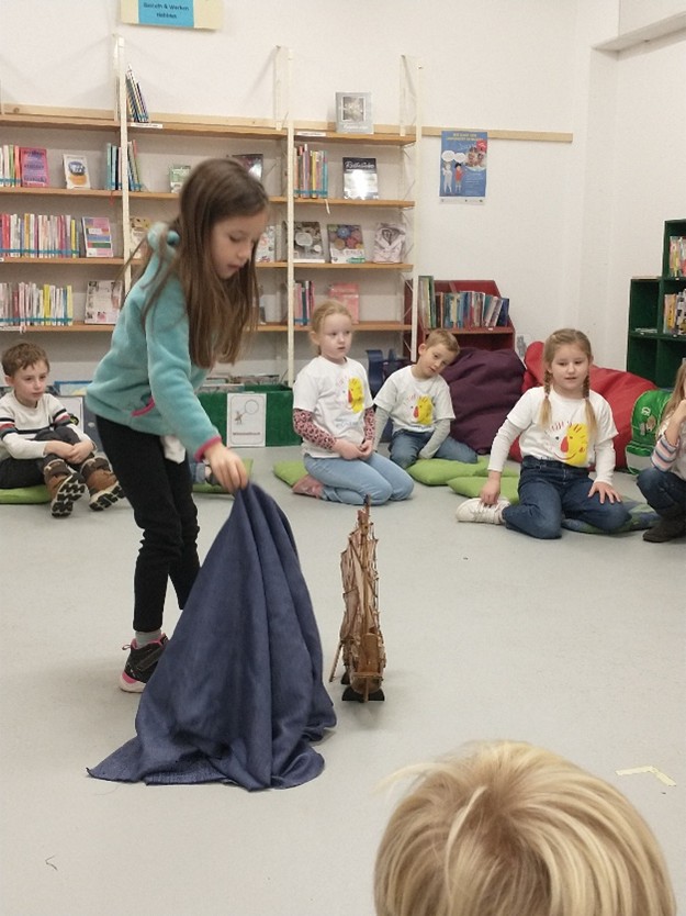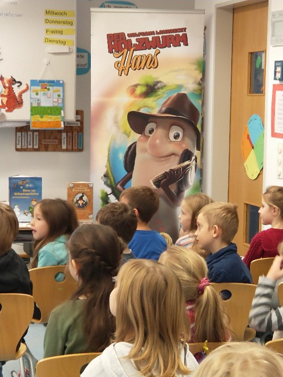 Doch Wolfgang Lambrecht hatte noch eine weitere Geschichte mitgebracht. Diese handelte vom Holzwurm Hans. Hans ist ein toller Geschichtenerzähler und liebt Musik über alles. Ob Hans seinen Traum, selber einmal auf einer großen Bühne zu stehen, realisieren kann, wird an dieser Stelle nicht verraten.