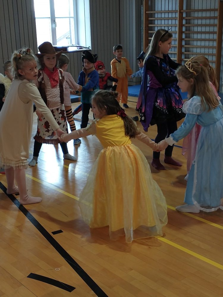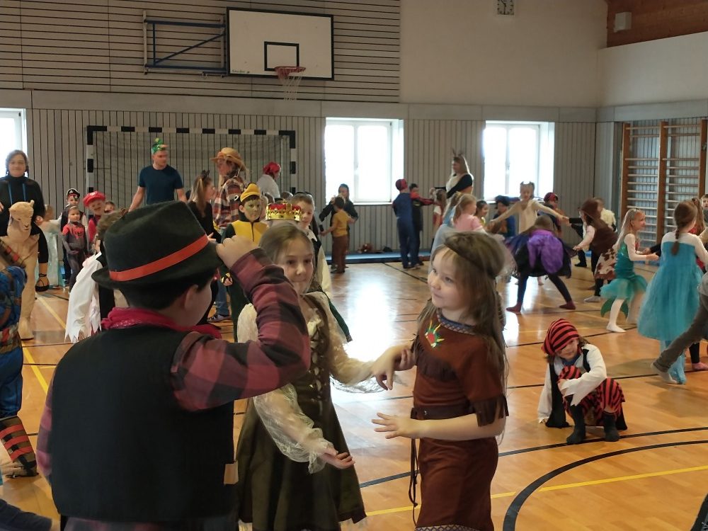 Der Elternbeirat verwöhnte uns wieder mit Krapfen (vielen Dank dafür!), bevor es in die Turnhalle zum Feiern ging. Zusammen mit den Kindergarten-Kindern wurde getanzt, gesungen und gespielt.
