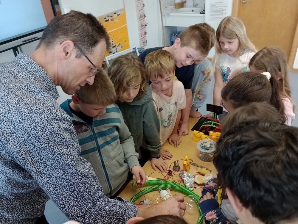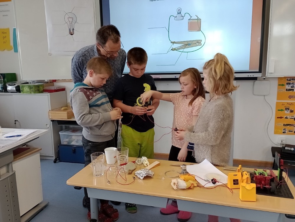 Dieser Besuch bildete den Abschluss einer langen Reihe von Strom-Schulstunden und die Schülerinnen und Schüler bewiesen mit ihren Antworten auf Herrn Webers Fragen z.B. zum Einsatz oder zu den Gefahren des Stroms, dass sie sich wirklich viel von dem interessanten Thema gemerkt hatten.