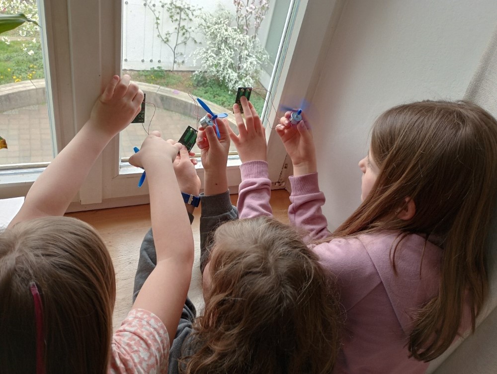 Im Nu waren alle „Plätze an der Sonne“ (oder wenigstens am Licht;-) besetzt und die Freude war groß, als die Kinder erfuhren, dass sie ihr kleine „Kraftwerk“ mit nach Hause nehmen dürfen.