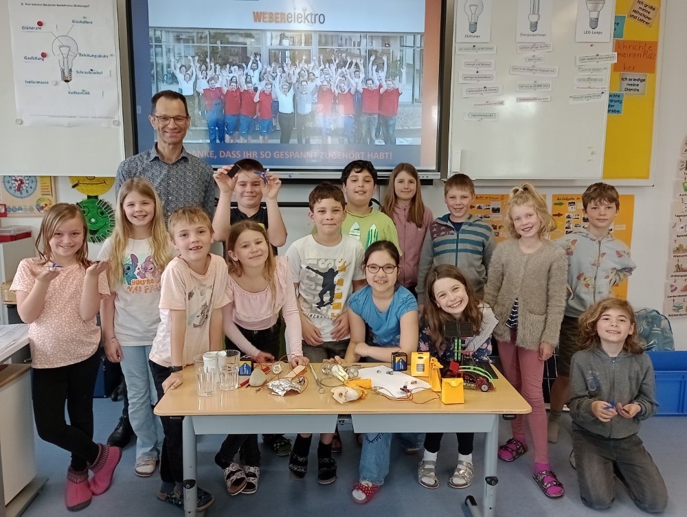 Kurz nach den Osterferien bekam die dritte Klasse Besuch von Herrn Weber, dem Chef von „Elektro Weber“ aus Feldkirchen-Westerham.