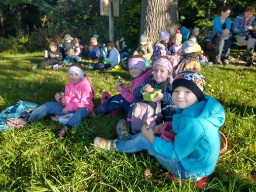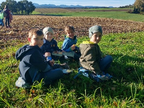 Auf der Wiese am Ende des Weges wurden hungrig die mitgebrachten Leckereien aus dem Rucksack ausgepackt und gemeinsam gepicknickt.