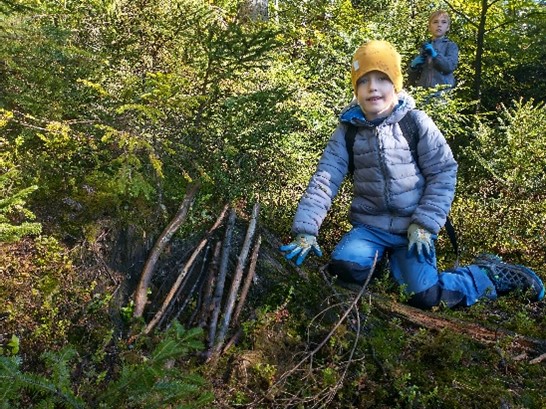 Im Anschluss wiesen die „Großen“ unsere Erstklässler in die Herstellung von „Wichtelhäusern“ aus Naturmaterialien ein. Stolz präsentierten alle ihre Bauwerke. Einem Einzug von Waldbewohnern steht also nichts mehr im Wege!